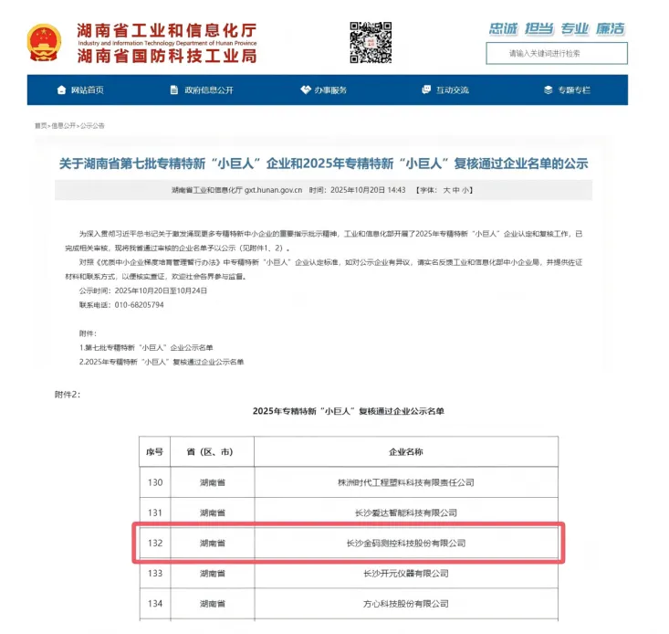 2025. aasta oktoobris lõpetas Tööstus- ja Infotehnoloogiaministeerium 2025. aasta "Väike hiiglaslike" ettevõtete ülevaatamise protsessi "Spetsialiseerunud, rafineeritud, diferentseeritud ja uuendusmeelsed" klassifikatsiooni alla ning avaldas nimekirja ametlikult. Kingmach Measurement & Monitoring Technology Co., Ltd on edukalt läbinud range ülevaatuse ja saanud selle riikliku tasandi au tagasi tänu oma püsivale innovatsioonivõimele, professionaalsele tehnilisele tugevusele ja stabiilsele turutegevusele.